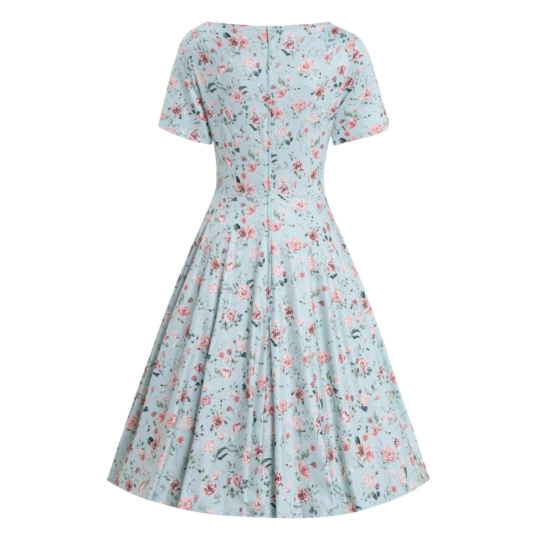 Embrace sophistication with the Brenda short-sleeved dress! This exquisite piece features elegant pink roses on a soft baby blue background, creating a romantic vintage aesthetic that never goes out of style. The thoughtful design combines classic beauty with modern comfort for a dress you'll reach for again and again.