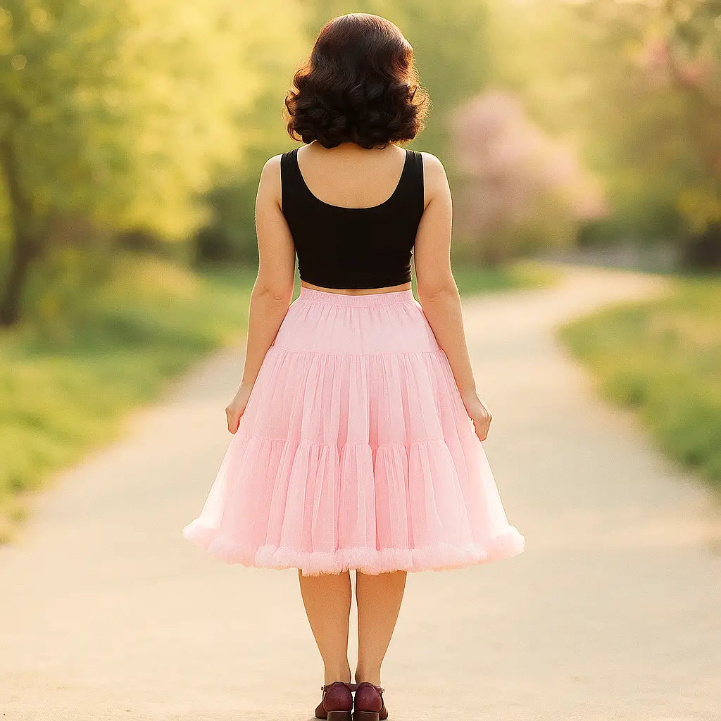 The Starlite design is a customer favourite because it's lightweight yet voluminous, making it ideal for layering under swing dresses or pairing with vintage-style separates. The light pink colour adds soft femininity and gentle charm, perfect for rockabilly festivals, 1950s weddings, or simply expressing your romantic retro spirit. It's a wardrobe essential for anyone who loves fashion that's as delicate as it is feminine.