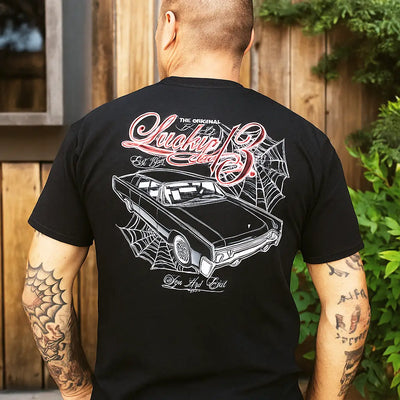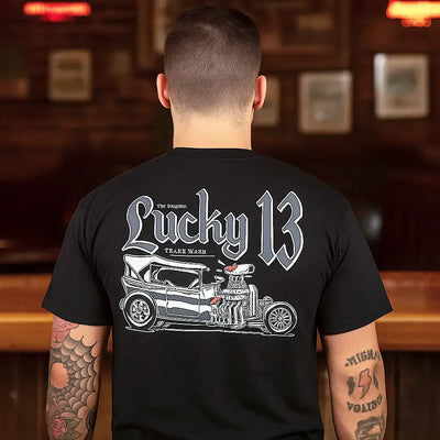 Official Lucky 13 USA tees featuring bold prints, hot rod vibes, and classic Kustom Kulture graphics. Imported, licensed, and built for attitude.