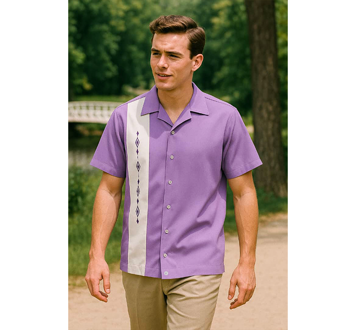 Ignite your retro style with the Havana Diamond Design Bowling Shirt by Nifty50's. This stunning shirt features bold diamond pattern panels combined with classic Cuban-inspired styling, crafted from soft stretchy fabric that provides all-day comfort while maintaining authentic 1950s rockabilly flair.