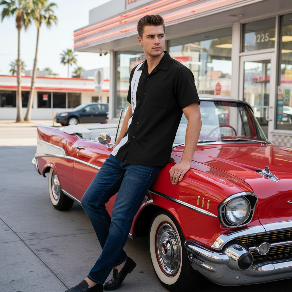 Perfect for rockabilly enthusiasts, vintage car shows, hot rod events, swing dancing, retro parties, casual vintage wear, and anyone who loves authentic 1950s Cuban-inspired bowling shirt style with bold diamond flair!